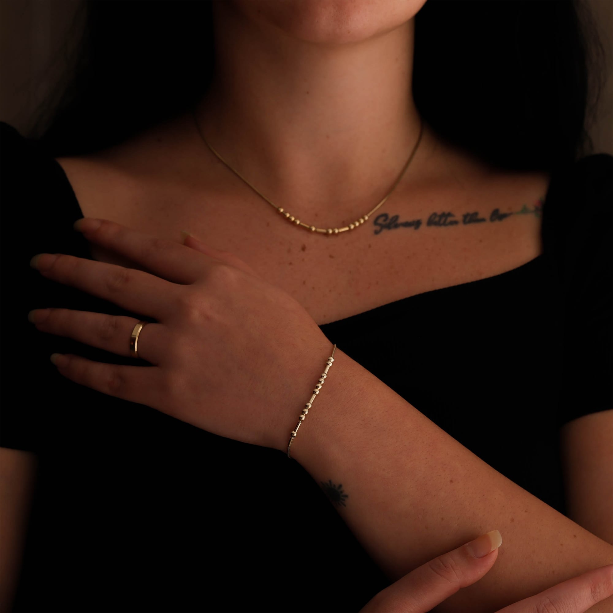 925 ayar gümüşten üretilen yılan zincirli mors alfabesi isim bileklik, şıklığı ve anlamı bir arada sunar. Gizli mesajınızı yalnızca sizin anlayacağınız şekilde tasarlayarak stilinize kişisel bir imza ekleyebilirsiniz.