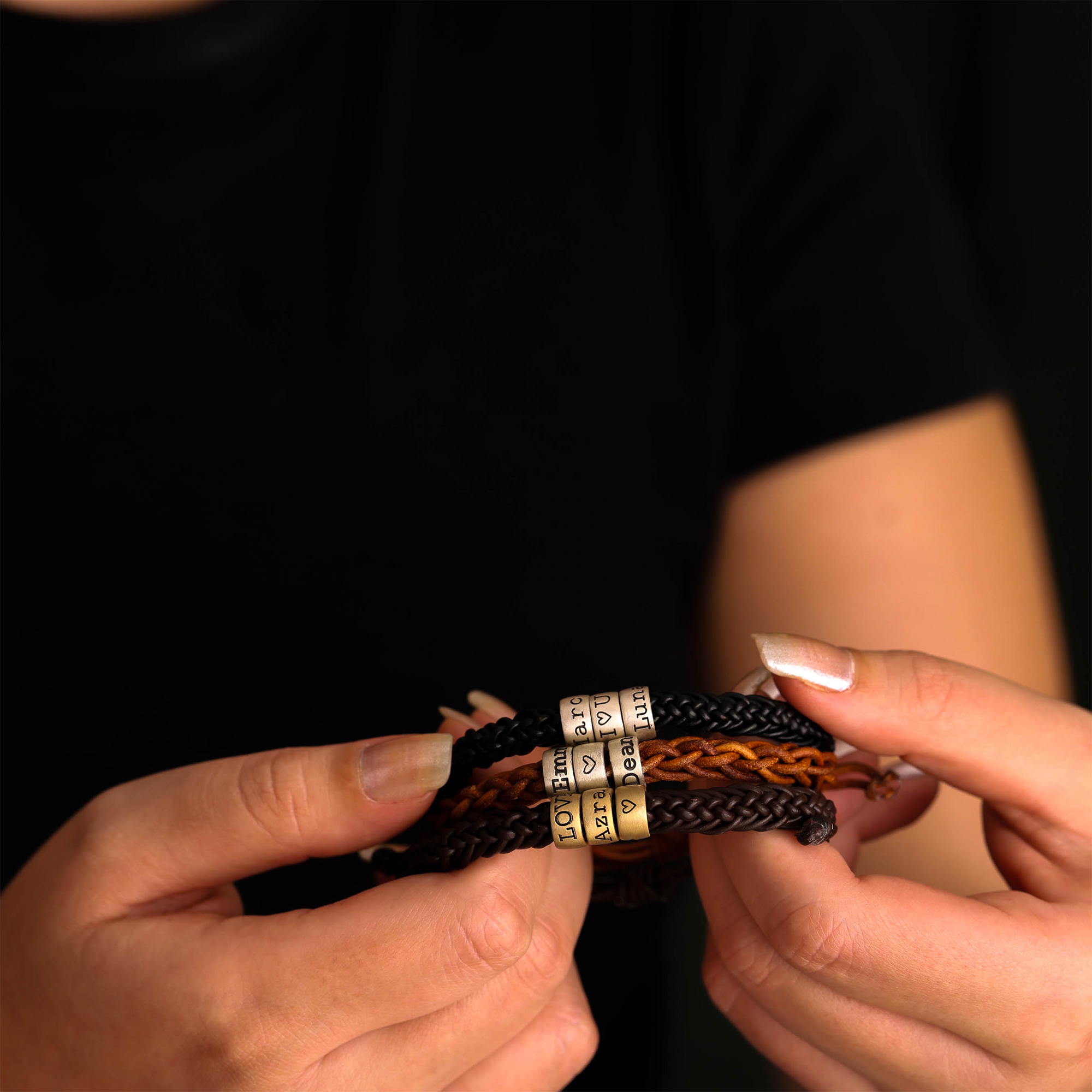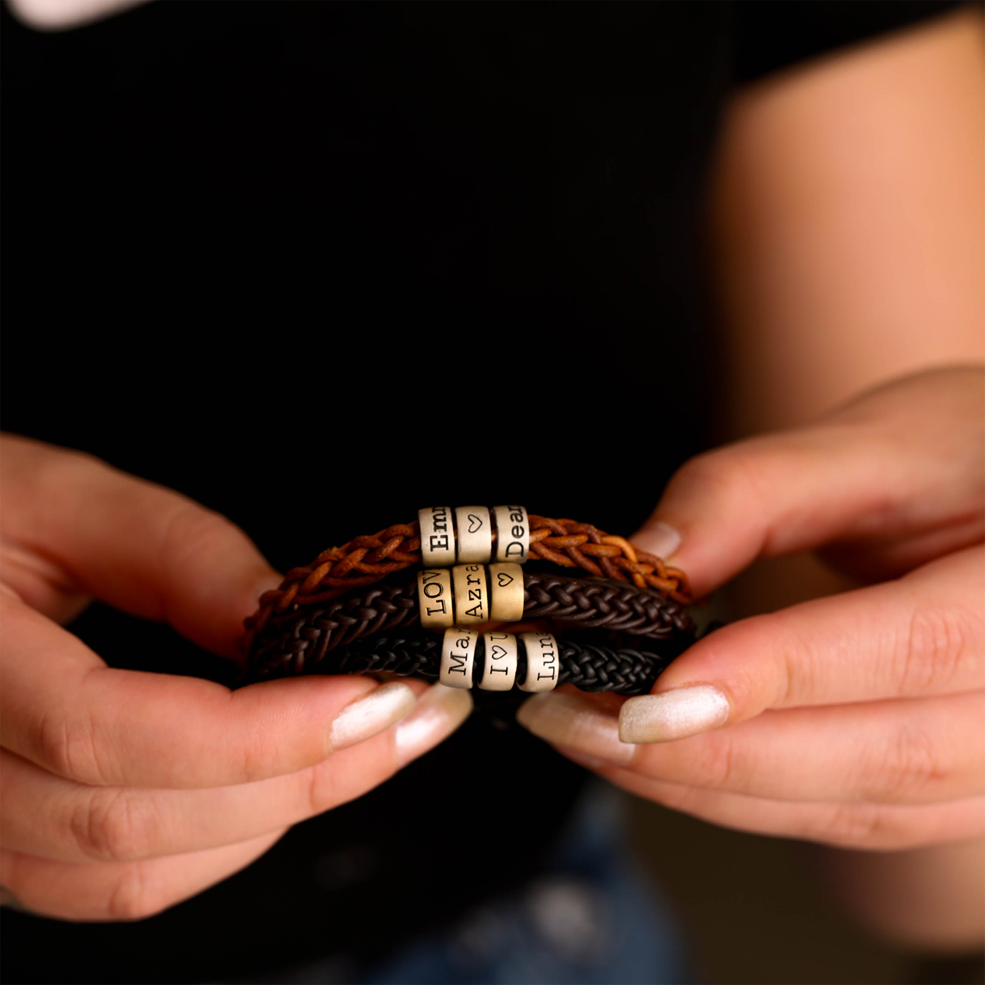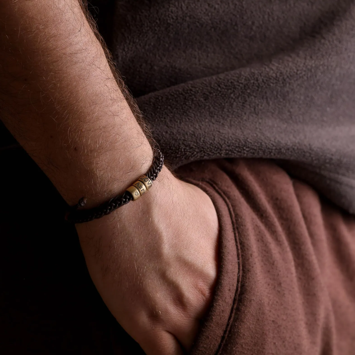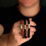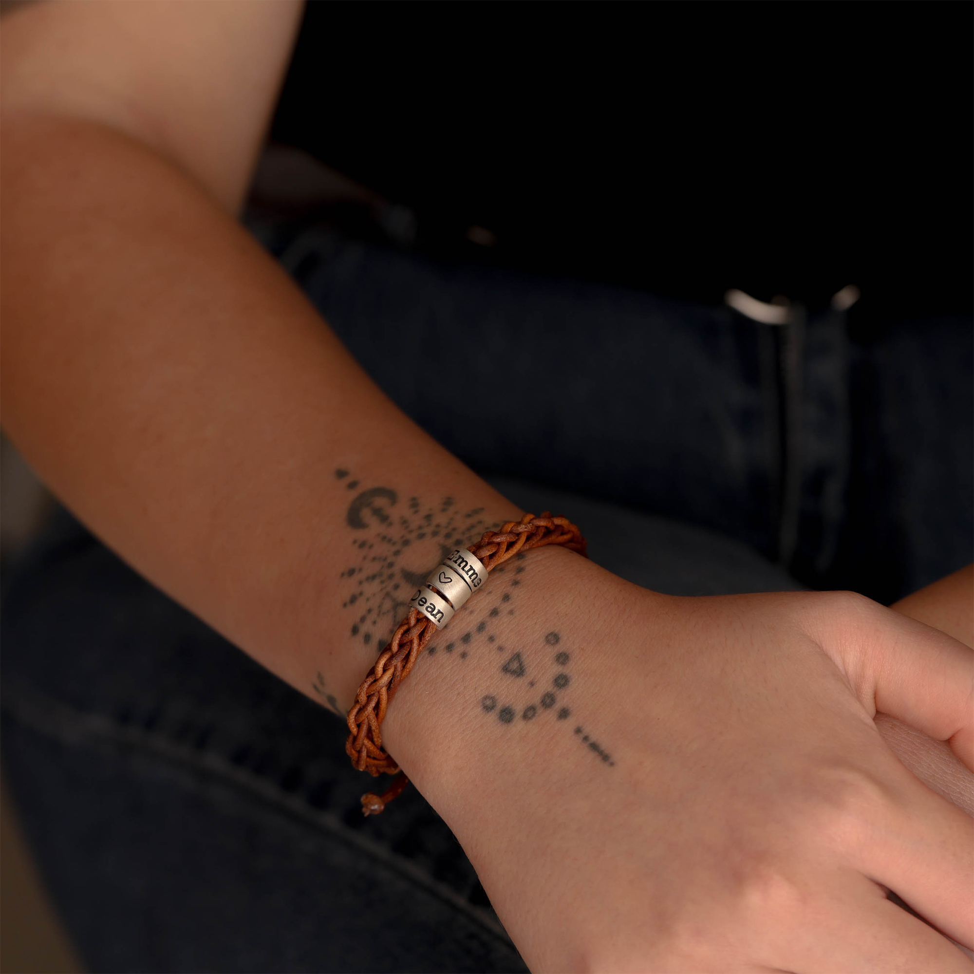 ✨ 925 Ayar Gümüş Halkalı Kişiye Özel Örgü Deri Bileklik ✨